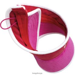 het vizier aan de strandzijde is een vizier met brede rand in badstof/handdoekmateriaal dat een must is voor de zomer. het heeft een verstelbare rugband en een verborgen elastische lus die het gemakkelijk maakt om op te rollen, vast te zetten en mee te nemen naar het strand. de colorblocking-techniek en de contrasterende bies en het logo op de voorkant houden het fris en modern.