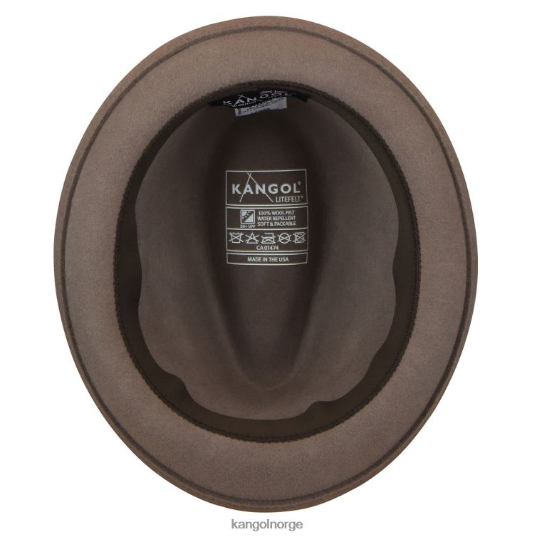 Litefelt wordt in de VS gemaakt met een revolutionaire formule die wol kreukelbaar, vormvast en waterafstotend maakt. de speler heeft een band van dezelfde stof en is een veelzijdige trilby waarvan de rand omhoog, omlaag of met een backflip kan worden gedragen.